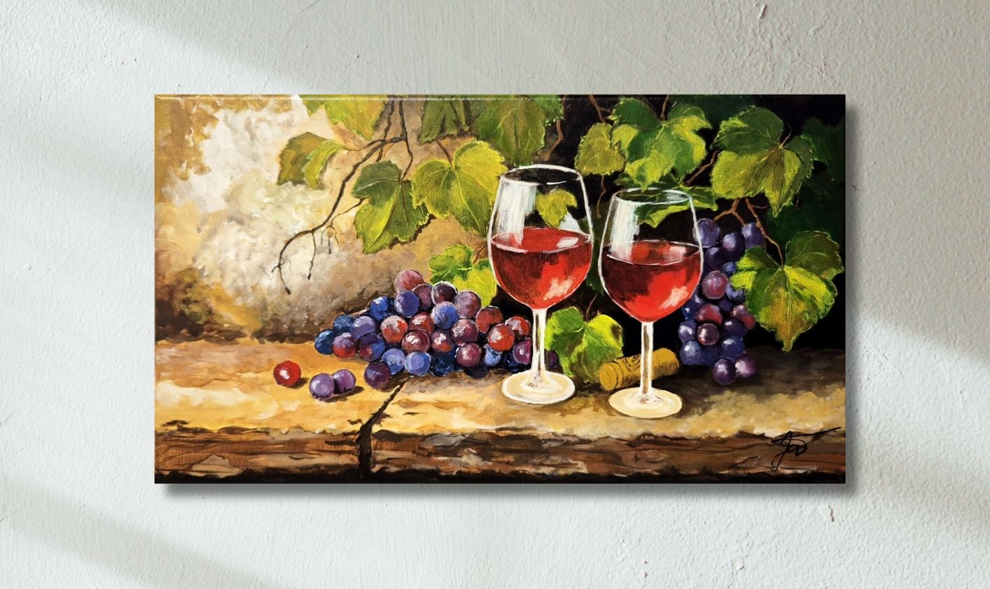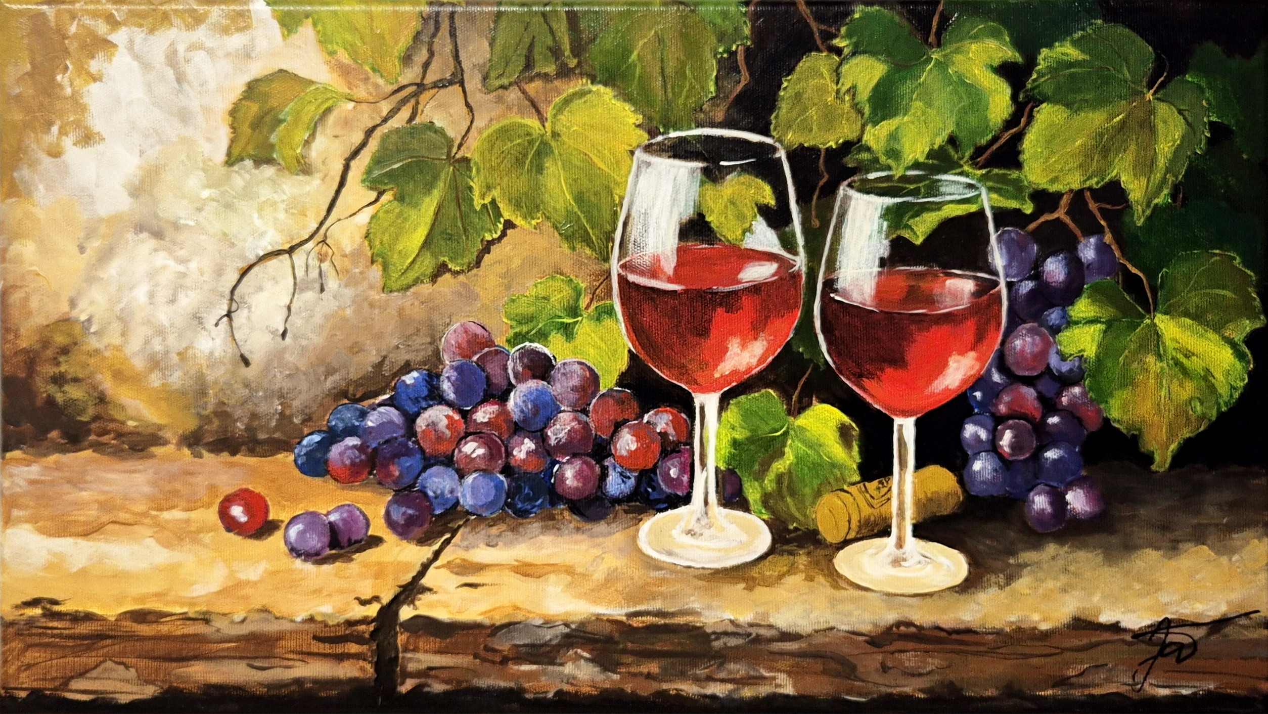 Obraz je namalovaný akrylovými barvami a povrchově ošetřen bezbarvým lakem, je tedy možné jej udržovat pomocí vlhkého hadříku.