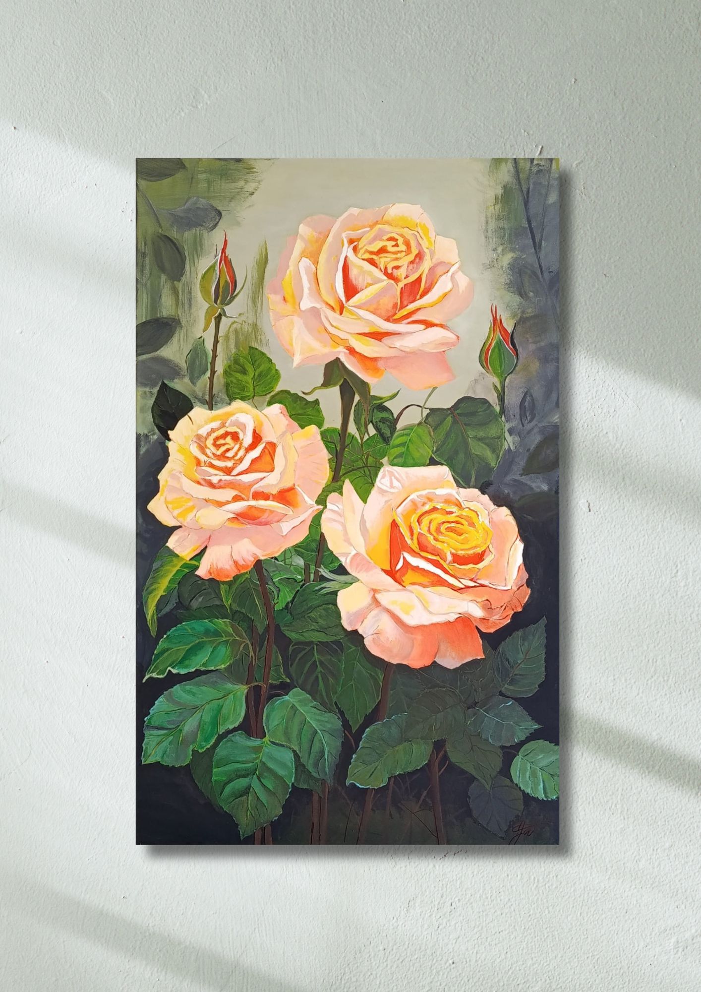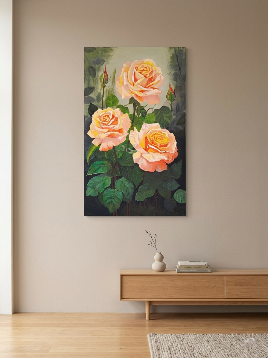 Plátno je vyrobeno z kvalitních přírodních materiálů- bavlny a lnu, je nataženo na dřevěném rámu o tloušťce 2 cm. Akrylové barvy jsou kvalitní, zaručují dlouhou životnost díla a barevnou stálost.