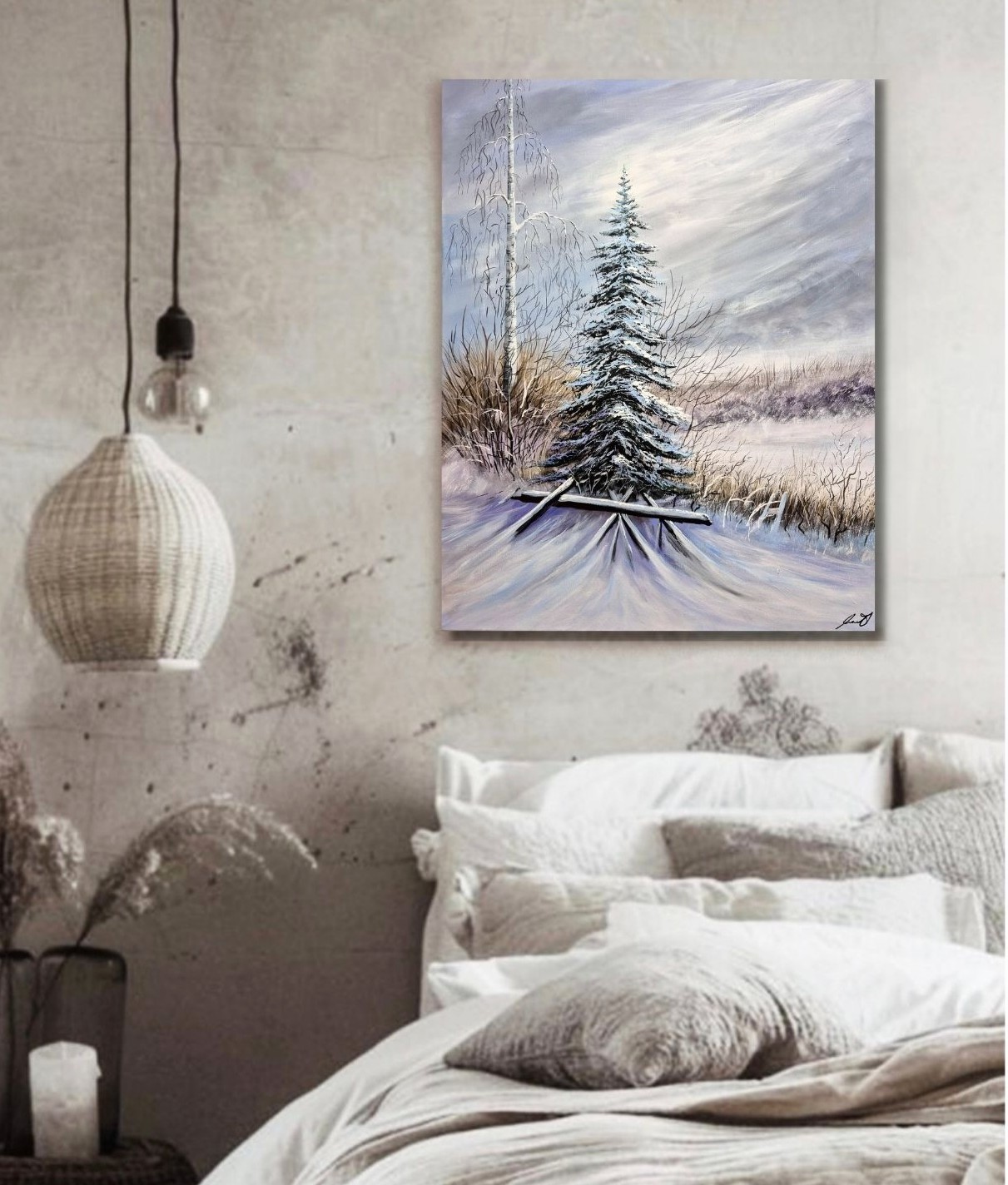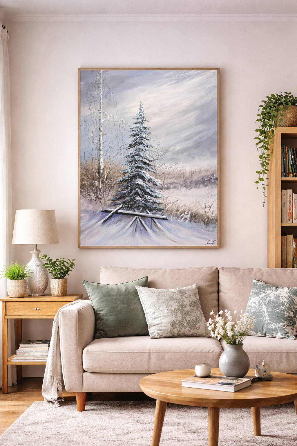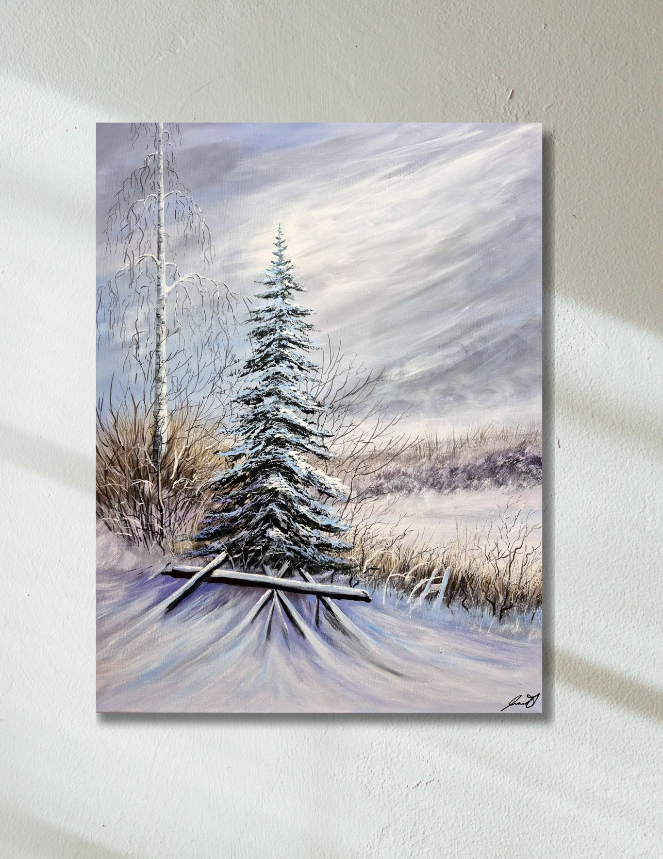 Jemná zimní krajina zalitá rozptýleným světlem, která zve ke zpomalení a tichému zastavení. Obraz působí klidně a přívětivě, navozuje pocit bezpečí a harmonie i v chladném ročním období. Ideální volba pro interiér, kde má prostor dýchat a uklidňovat.